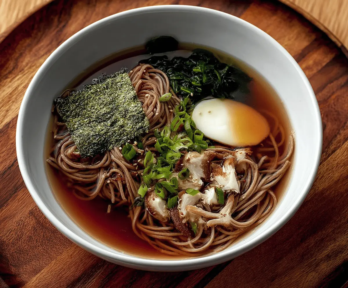 For a little extra flavor, drizzle a bit of sesame oil over the soup. Serve your soba noodle soup hot, alongside chopsticks and a spoon for enjoying the flavorful broth. Enjoy the cozy and delicious experience!