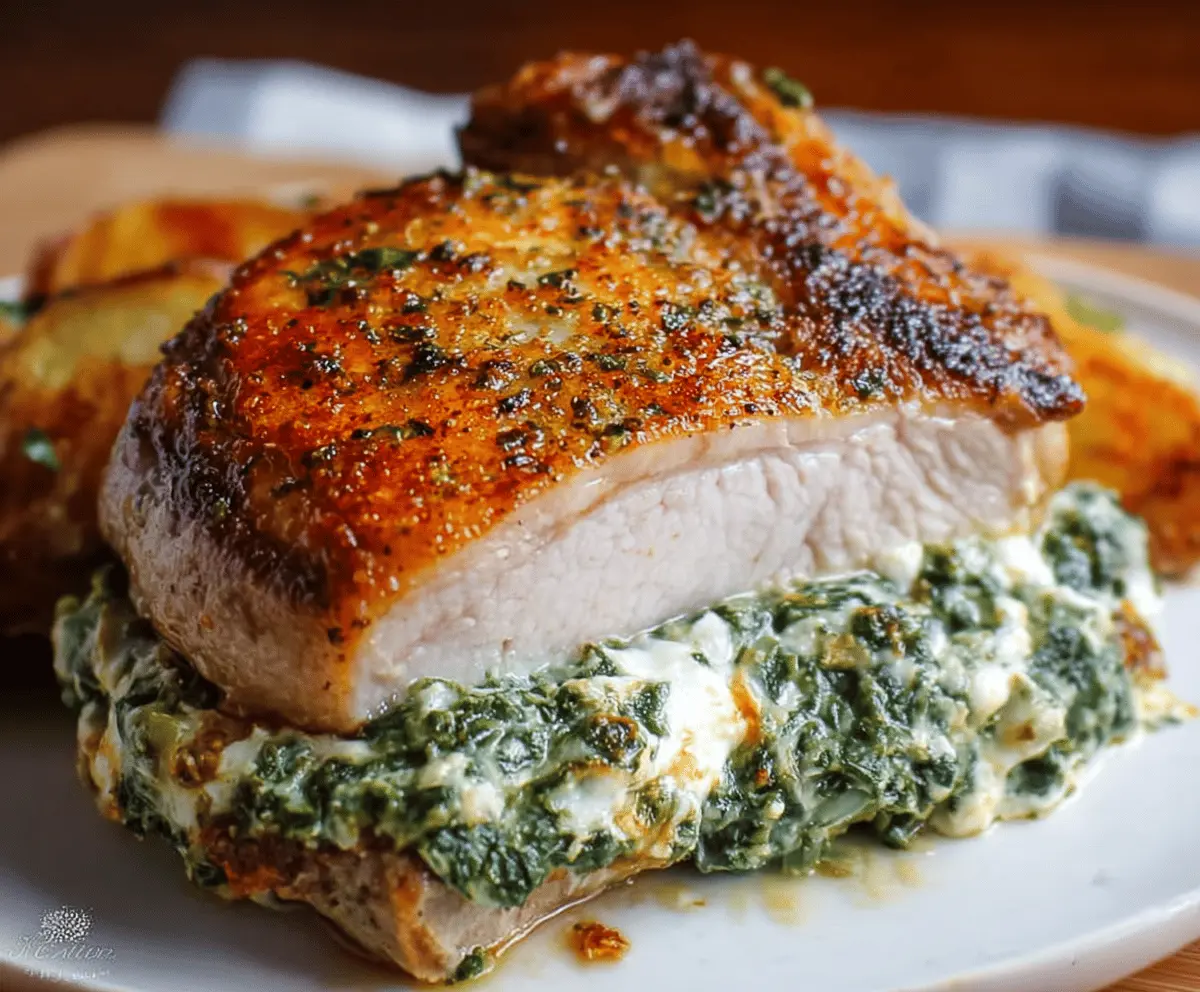 Enjoy your juicy, flavorful pork chops with creamy spinach and cheese stuffing oozing out!