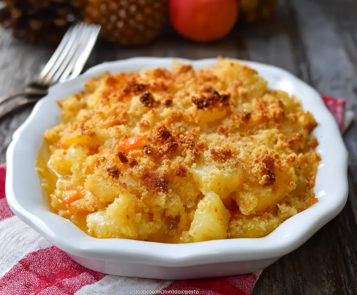Enjoy this classic Sweet and Sour Pineapple Casserole as a delicious side or a delightful holiday treat!
