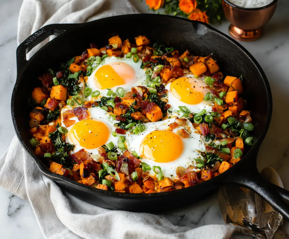 This hearty breakfast is not only satisfying but also packed with nutrients from the sweet potatoes, veggies, and eggs. Perfect for brunch or a cozy breakfast at home!