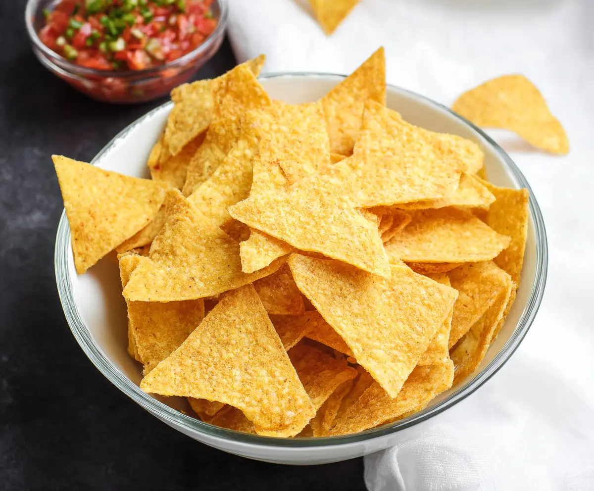 Tortilla chips are crispy snacks made from corn tortillas that are cut into triangles and baked or fried. They are perfect for dipping in salsa, guacamole, or just enjoying plain!