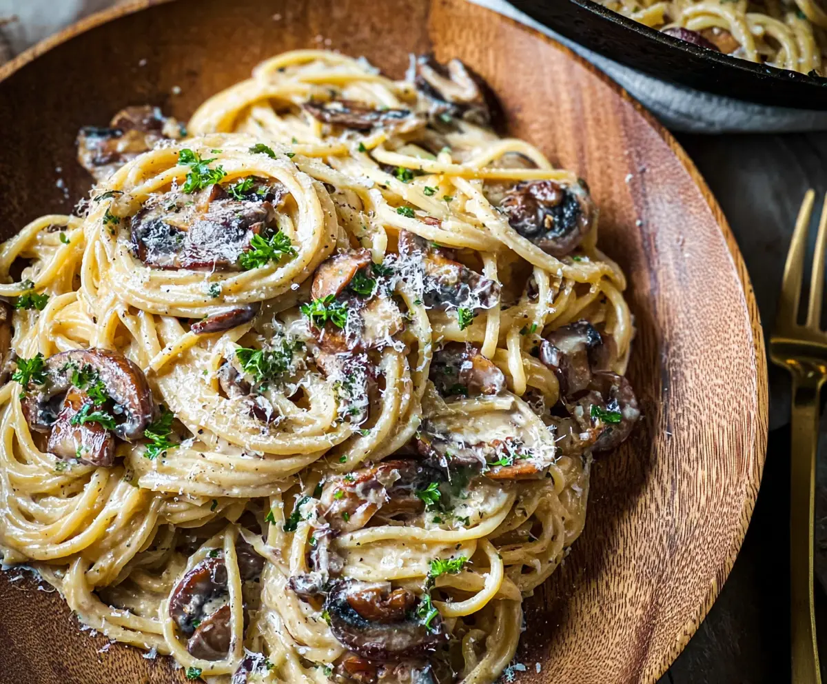 This creamy pasta is a real treat with its rich flavors of truffle and mushrooms. It’s like a cozy hug in a bowl that makes dinner feel special!