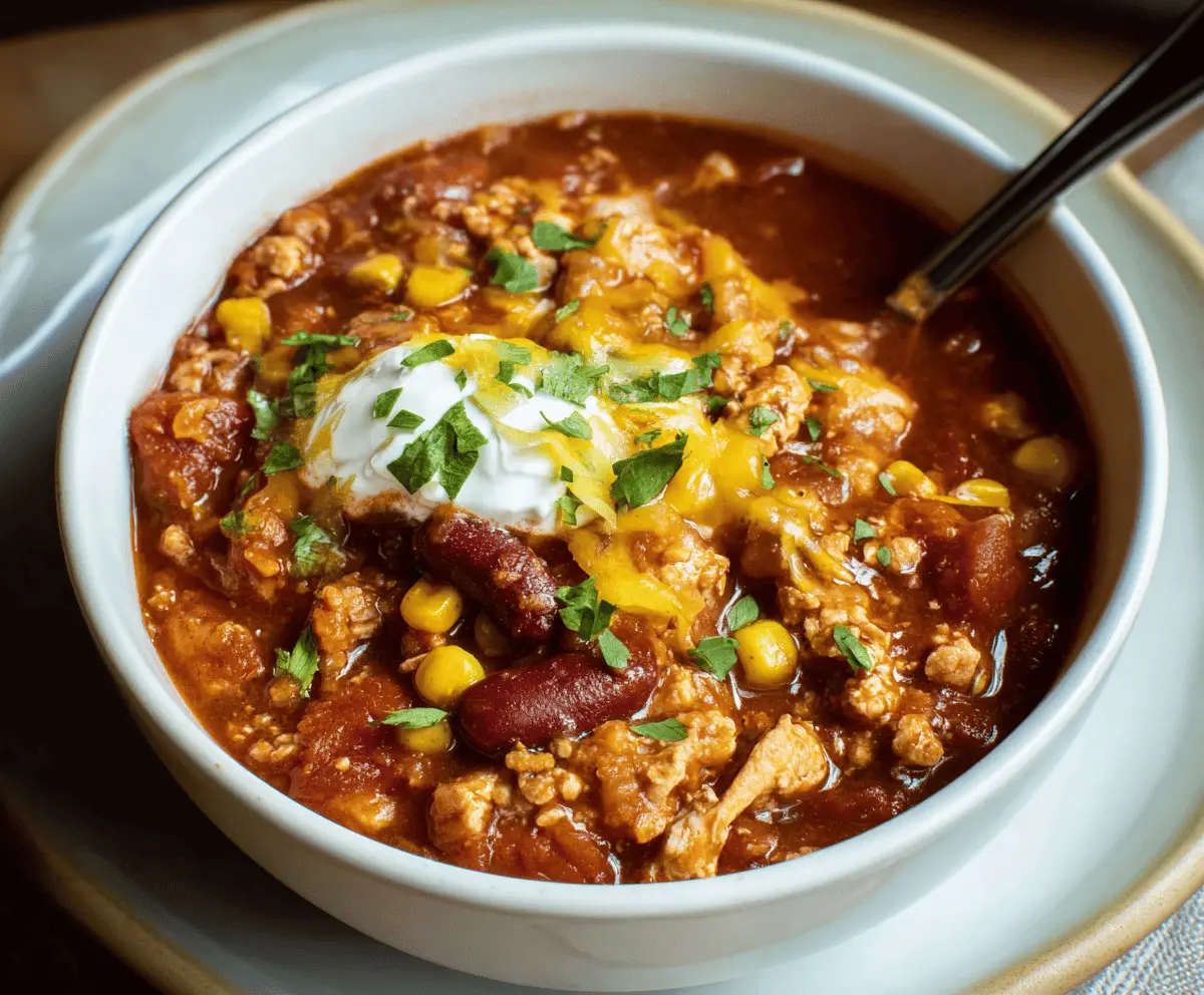 This turkey chili is hearty, flavorful, and comforting—perfect for a cozy meal! Enjoy every bite! 😊